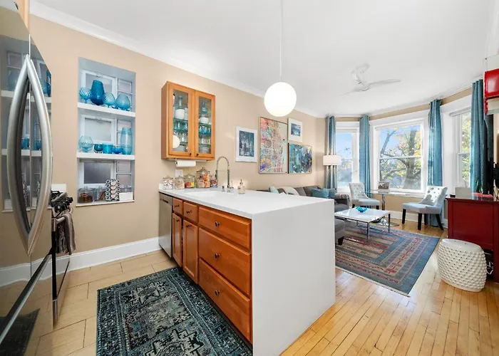 The 2-room 2F Chicago'S Little Italy Near West Loop & Downtown Apartment offers easy entry to such city sights as Notre Dame De Chicago Parish, situated only 6 minutes' walk away.